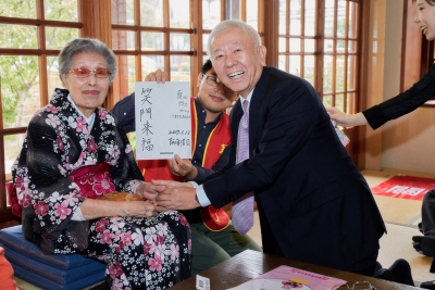 「SUN流通集團」一直以來,除了提倡「健康長壽的飲食習慣」外,集團代表阿南孝司先生更強調人要活得有意義,便是要保持一顆隨時能關心他人回饋社會的「愛心」,因此「SUN流通集團」秉持著取之於社會用之於社會的愛心理念,長期支持華山.創世基金會至今已持續25年不曾間斷,今年更號召全體員工捐助愛心年菜,並由阿南孝司先生帶領同仁與蔡奶奶及其他長輩們一起提前感受過年的氣氛。另外為讓奶奶重溫年少情懷一圓日本夢,「西本願寺八拾捌茶輪番所」也提供古蹟重建的日式茶館,讓奶奶感受日式懷舊氛圍,並且體驗茶道文化,最後再送上平安御守以及愛心年菜,祈求長輩們新的一年平安喜樂。